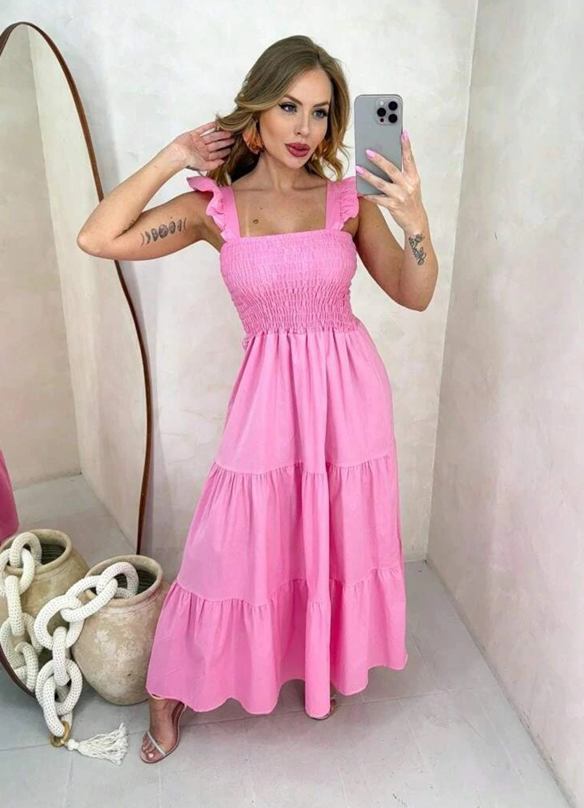 Vestido Lorena Lastex Longo com Alça Ciganinha